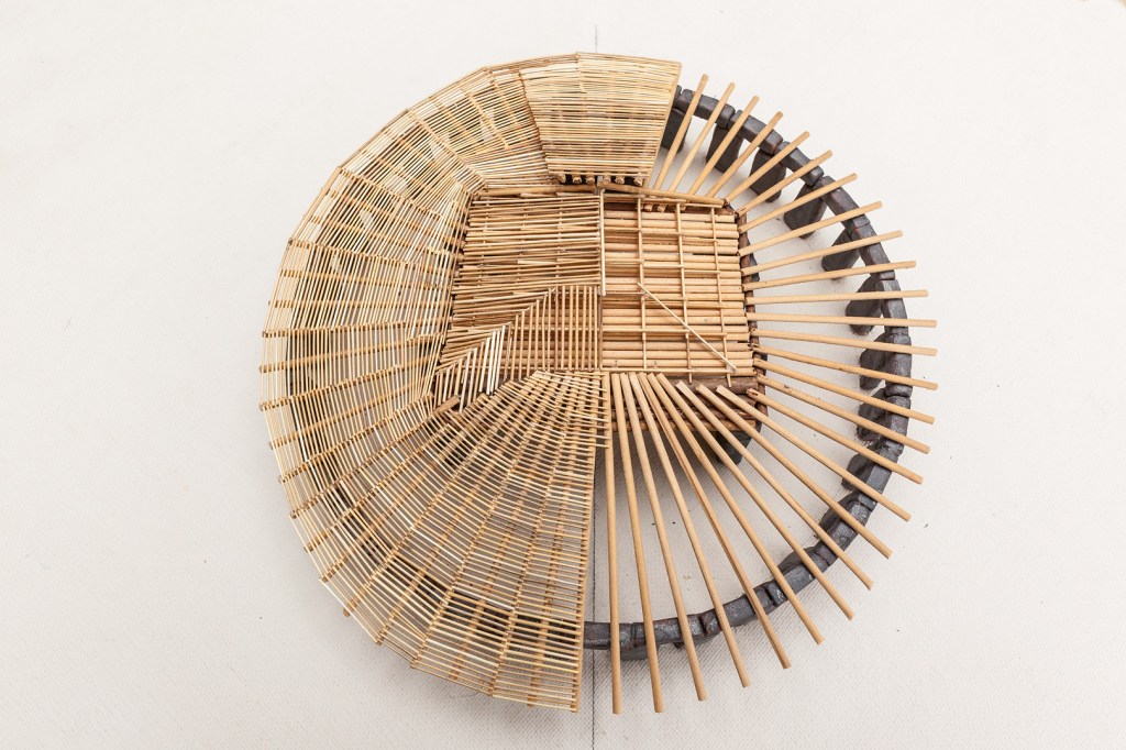 Návrh zastrešenia [9, 10] vychádzal z jasnej dispozície podporujúcej kamennej konštrukcie a jej funkčných vlastností. Dispozícia predurčovala použitie jednoduchej drevenej strechy iba z rovných kmeňov rôznych priemerov a dĺžok (obr.4, 5). Tým bola možná verná historická rekonštrukcia, ktorá plne zodpovedá vlastnostiam podporujúcej kamennej konštrukcie a dobovým výrobným možnostiam. Súčasne poskytla predstavu o pôvodnom vzhľade objektu. Tiež bola jednoduchá z hľadiska zhotovenia.