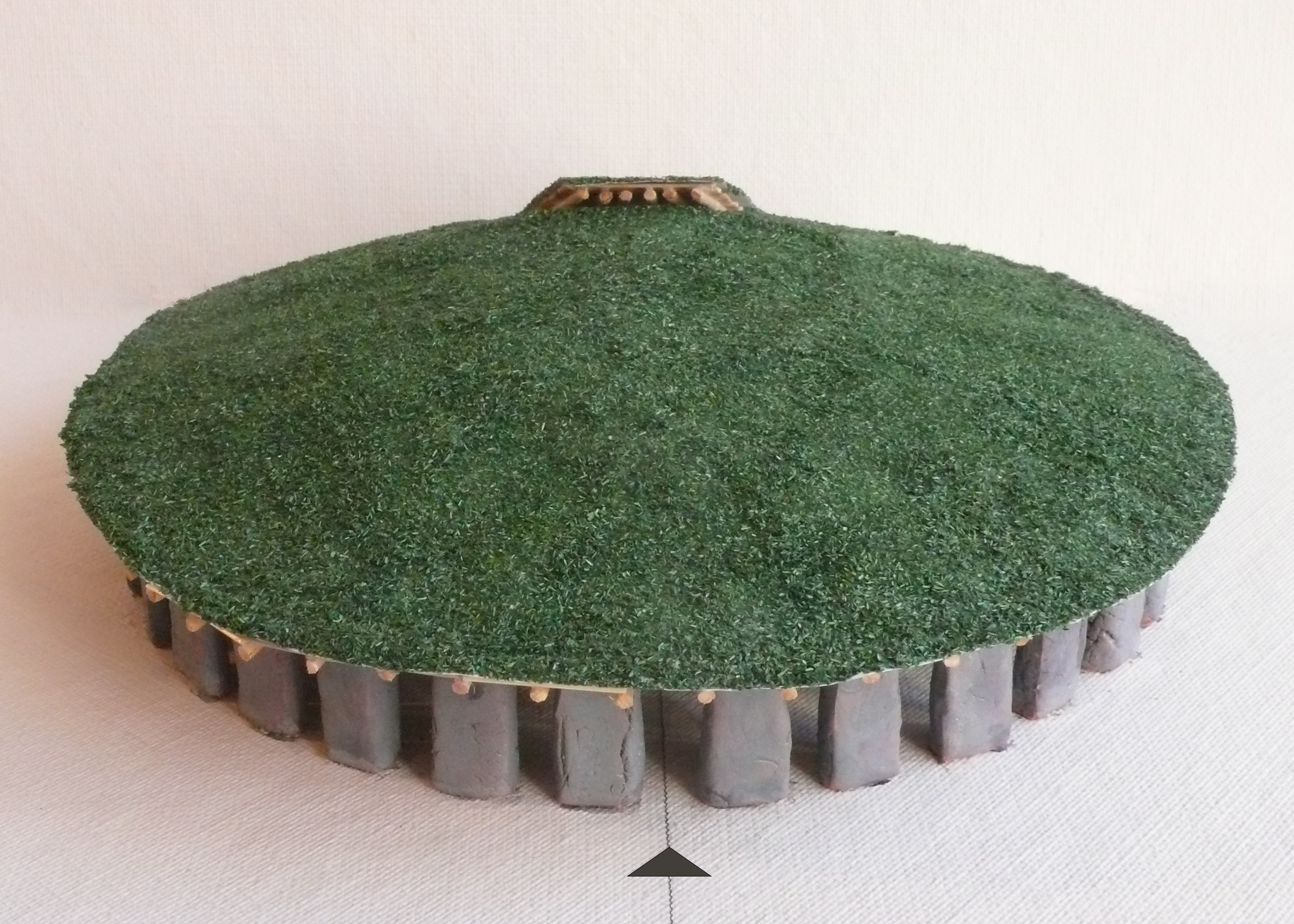 Výsledne mala tvar guľového vrchlíka so svetlíkom [9, 10]. Tým by, až na svetlík, bola tvarom podobná strechám monumentov Newgrange v Írsku a Soto Dolmen v Španielsku. Ale kým oba posledne menované objekty boli iba z kameňa a mali malé vnútorne priestory, Stonehenge bol veľkokapacitný a nezávisle na počasí použiteľný dvojpriestorový objekt s drevenou strechou (obr. 6, 7). Tým sa veľmi pravdepodobne dá nazvať Centrálnym objektom Salizburskej pláne.