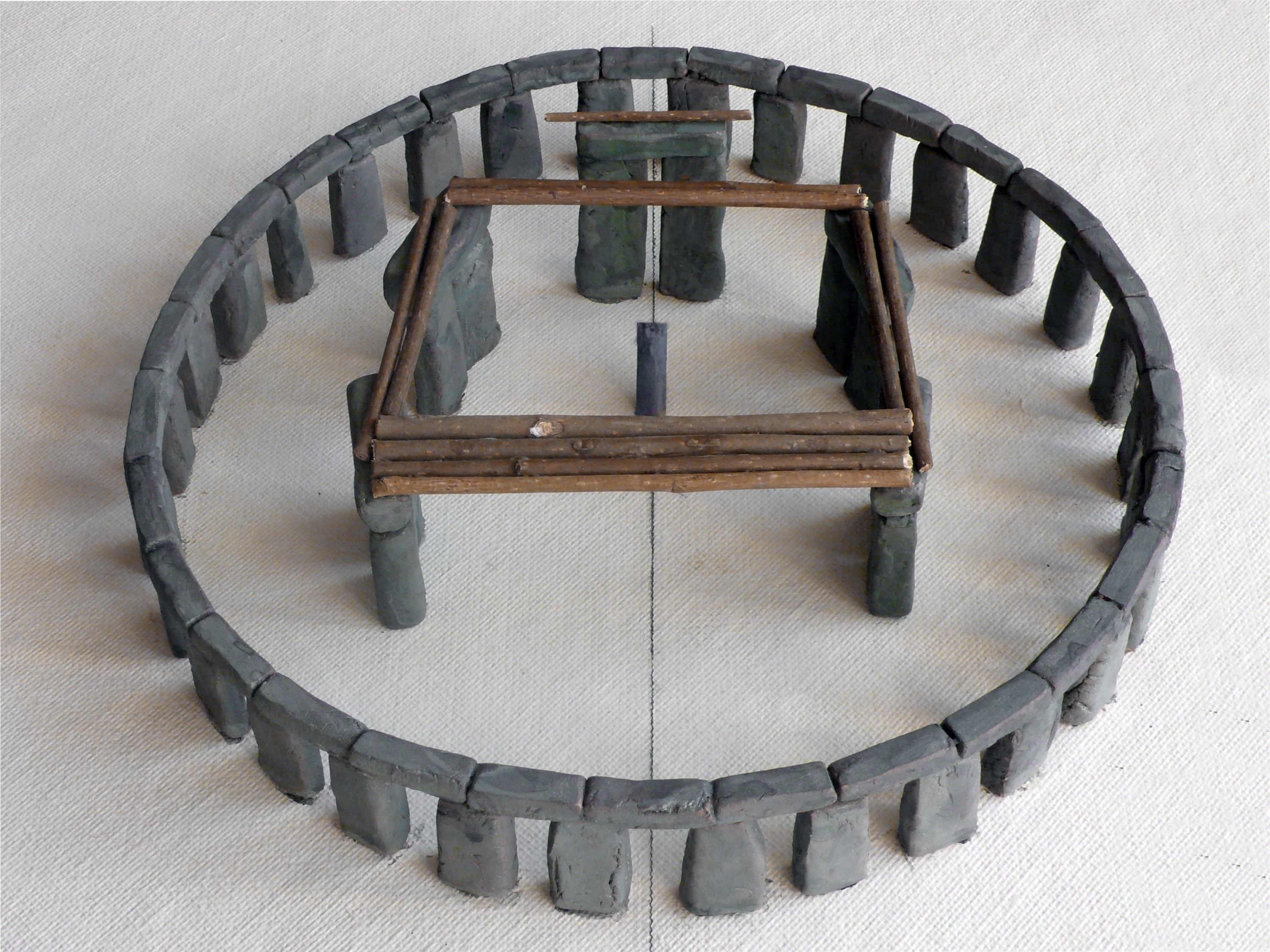 - obvodového Sarsen Circle priemeru cca 30 m, o ktorom sa dokázalo, že bol úplný [2,13] a pozostával z 30 po obvode pravidelne rozmiestnených pilierov a na nich ležiacich 30 prekladov spolu v tvare obvodovej steny s otvormi,