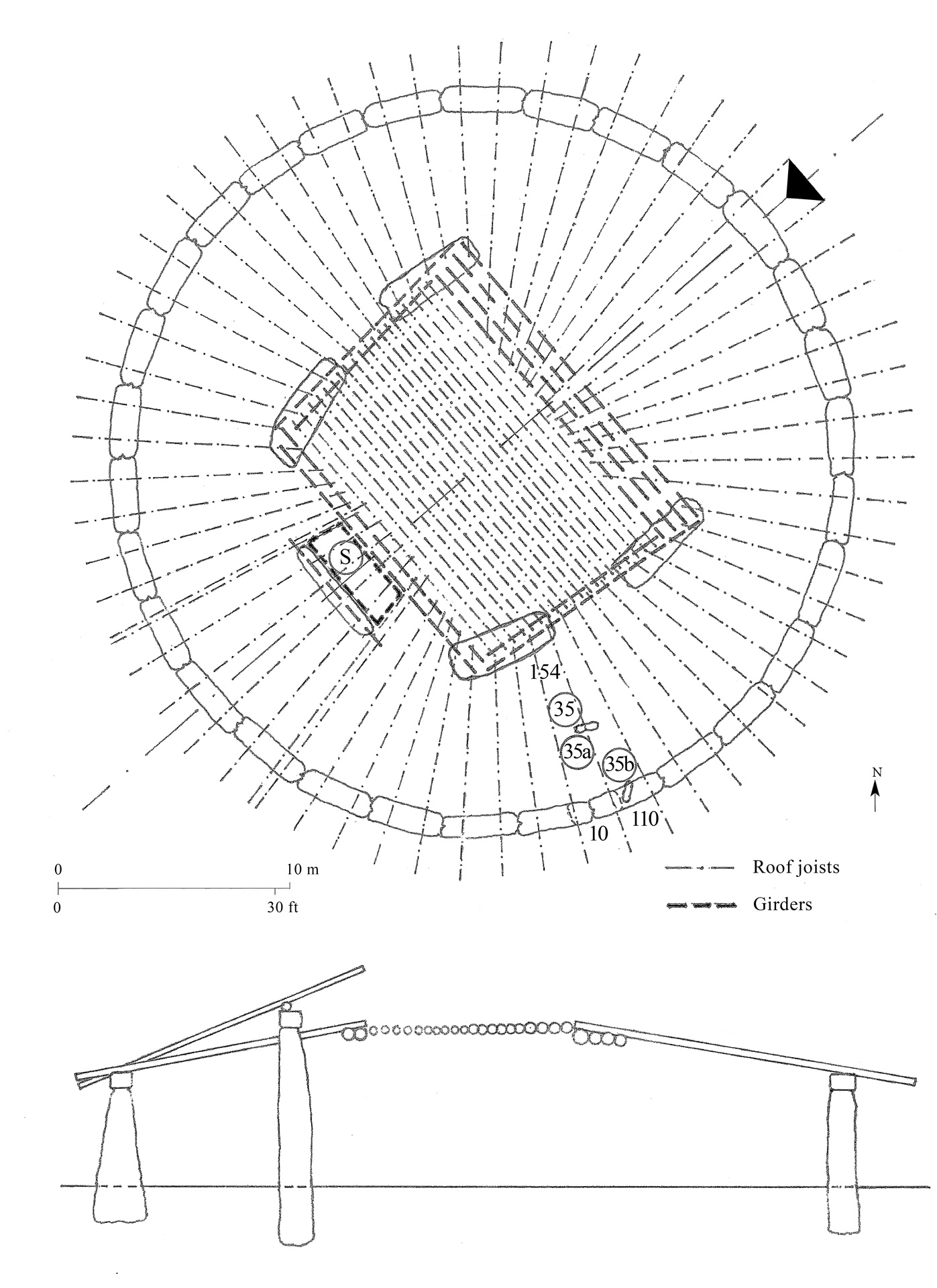 This reluctance may reflect a paradox within British archaeology, where roofed structures are recognized when postholes and floor remains are present — but where a monument with clear structural characteristics of a roof-supporting system is not recognised.